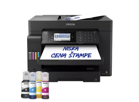 • Технологија: PrecisionCore™ Printhead; минимум капка ~3.3 pL; мастила: 4-бојно (Black, Cyan, Magenta, Yellow) инк-танк систем.